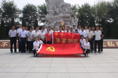 在惠民县渤海革命老区机关旧址广场前,全体教工党员整齐肃立在革命先烈雕像前,向雕像敬献花篮,向革命先烈三鞠躬,全体党员在革命先烈雕像前重温了入党誓词。
