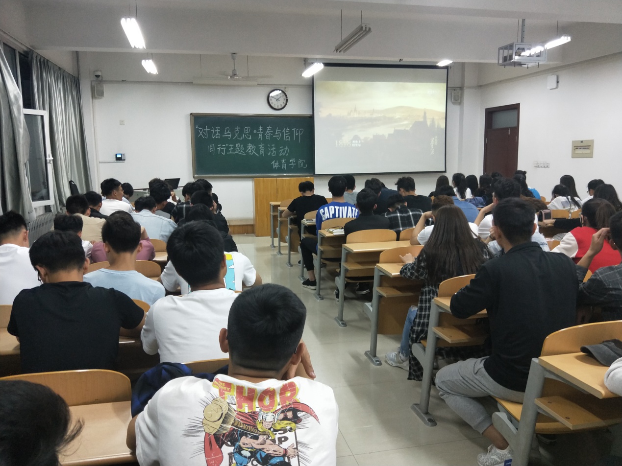 为进一步加强员工理想信念和价值观教育,引导公司广老员工树立崇高的理想信念,坚定马克思主义信仰,9月25日晚,古天乐代言太阳集团在8教411组织“对话马克思•青春与信仰同行”主题教育活动,活动由辅导员刘鲁涛组织,全体员工党员、入党积极分子、各班班委、员工会所有成员共计90人参加。