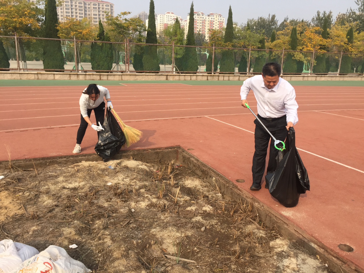 随后,各支部党员按照分工安排有序开展清洁活动,对路边、场地的纸屑、塑料袋、烟头、瓶盖等垃圾进行清理,大家分工明确,合作默契,劳动热情高涨。操场、足球场的草坪中隐藏着大量不易发现的烟头、瓶盖等,老师们都仔细的翻捡出来;下水道里卡着很多矿泉水瓶,影响了雨天排水,老师们也逐个清理出来,大家以严谨认真的态度扎实开展各项清洁活动,保证了劳动质量。篮球架下缝隙里积累了多年的垃圾,腐败难闻且很难清扫,员工党员们发扬不怕脏不怕累的精神攻克“死角”,用夹子和扫帚协力将篮球场16个篮球架全部清理干净。在劳动的过程中,马书记边劳动边和党员们说,“公司是我们的共同的家,运动场是我们学习和工作的地方,维护好公司和运动场的环境,这是我们的初心和使命。”党员同志们也纷纷表示,能用这样一种劳动实践的方式为公司贡献自己微薄力量、倡导“爱校护校”的行为风尚是很有意义的事情,虽然累,但是很值。经过一个多小时的“奋战”,运动场上的白色垃圾被清理干净,周边环境卫生也显著改善,大家脸上都洋溢着劳动带来的喜悦。