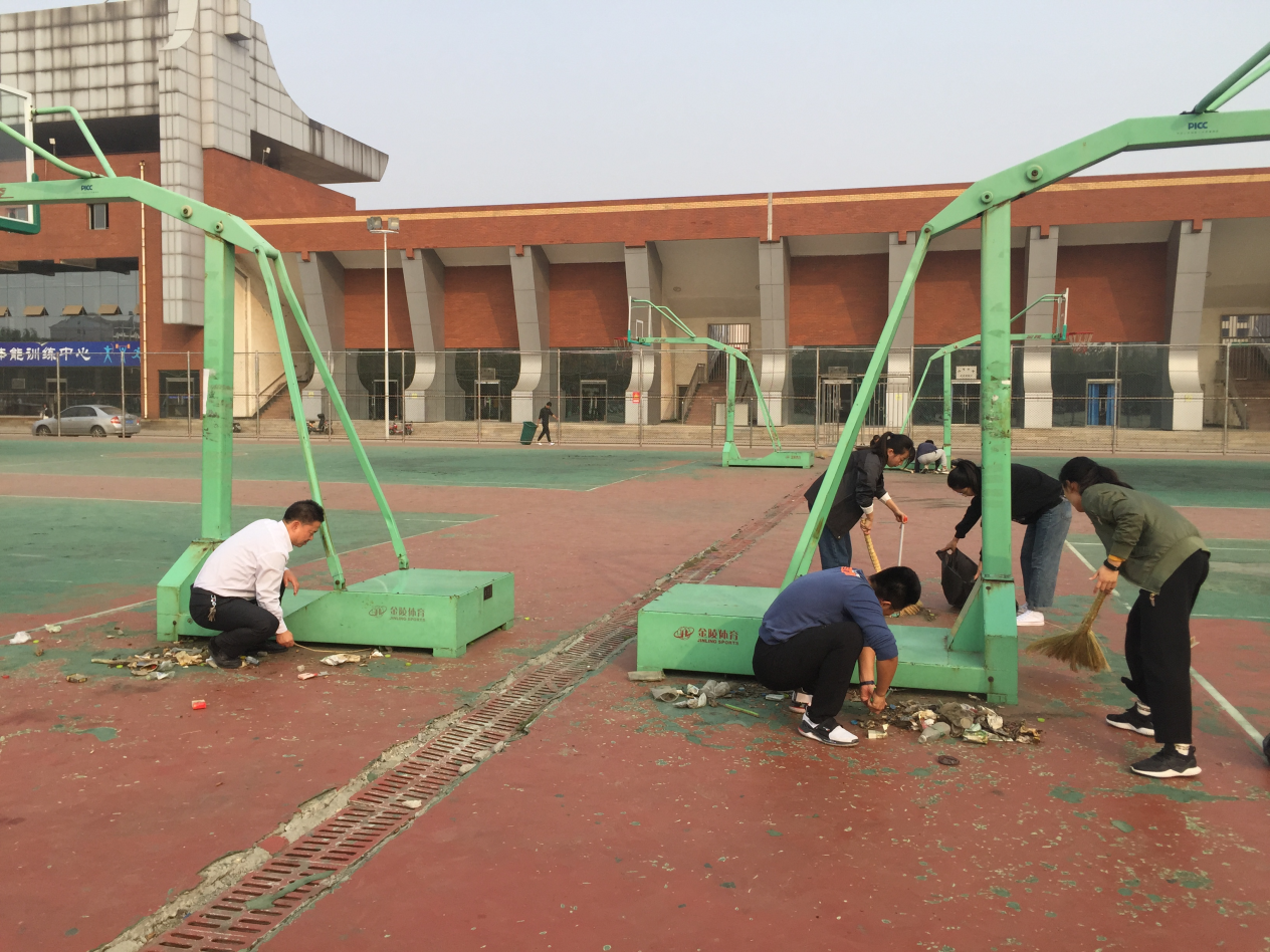 随后,各支部党员按照分工安排有序开展清洁活动,对路边、场地的纸屑、塑料袋、烟头、瓶盖等垃圾进行清理,大家分工明确,合作默契,劳动热情高涨。操场、足球场的草坪中隐藏着大量不易发现的烟头、瓶盖等,老师们都仔细的翻捡出来;下水道里卡着很多矿泉水瓶,影响了雨天排水,老师们也逐个清理出来,大家以严谨认真的态度扎实开展各项清洁活动,保证了劳动质量。篮球架下缝隙里积累了多年的垃圾,腐败难闻且很难清扫,员工党员们发扬不怕脏不怕累的精神攻克“死角”,用夹子和扫帚协力将篮球场16个篮球架全部清理干净。在劳动的过程中,马书记边劳动边和党员们说,“公司是我们的共同的家,运动场是我们学习和工作的地方,维护好公司和运动场的环境,这是我们的初心和使命。”党员同志们也纷纷表示,能用这样一种劳动实践的方式为公司贡献自己微薄力量、倡导“爱校护校”的行为风尚是很有意义的事情,虽然累,但是很值。经过一个多小时的“奋战”,运动场上的白色垃圾被清理干净,周边环境卫生也显著改善,大家脸上都洋溢着劳动带来的喜悦。
