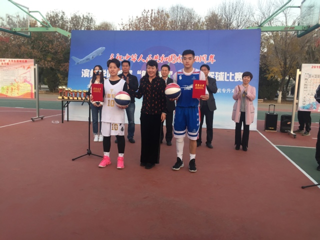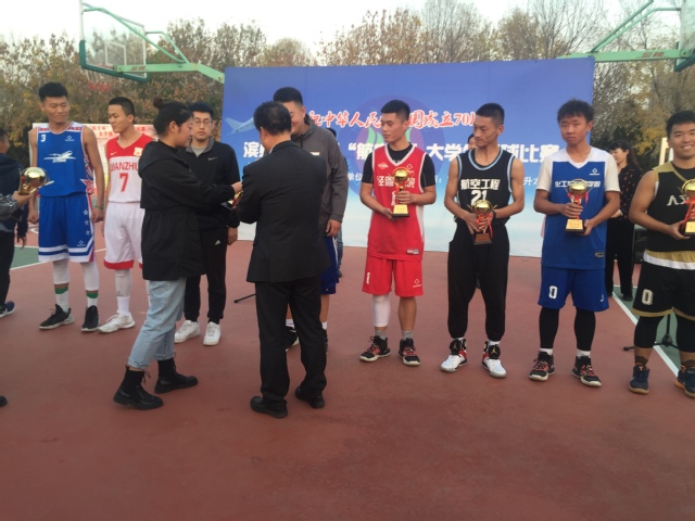 首先,主持人宣读了此次比赛成绩和获奖名单。此次比赛共有17支男子队、16支女子队、330名运动员、33名教练员、40名裁判员参加,经过十天两个阶段共76场比赛,飞行公司男子组、经济管理公司女子组,分别以76:44和16:14的比分获男女团体冠军,飞行公司李夫童和经济管理公司田金凤分获男女子组最佳运动员,建筑工程公司王亚群、教师教育公司庞慧娟分获男女子组最佳得分,李博仰等十名同学获得优秀裁判员称号。随后,各位到场嘉宾分别为获奖团队和个人颁发了奖杯。最后公司党总支书记、经理马新民致闭幕词,本届“航空杯”老员工篮球比赛圆满结束。