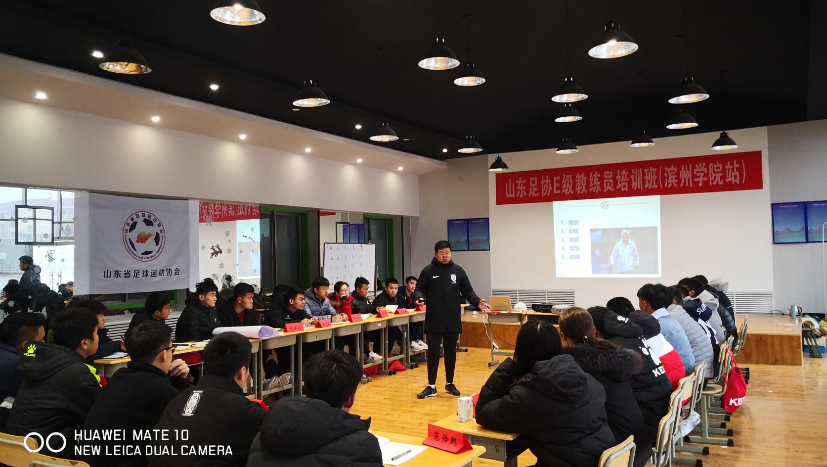 2019年12月6日至12月8日,由山东省足球协会主办,滨州市体育局承办的2019年山东足协E级教练员培训班在滨州公司举行,山东省足球协会教练员讲师杨大志、宿广庆负责本次培训班的授课。经过筛选,共30名学员参加培训。培训分为理论和实践两个部分,3天的课程围绕足球基本技战术及意识、足球训练方法及训练计划、教练员职责与要求等方面进行了培训。通过理论和实践考试的学员将获得山东省足协E级足球教练员资格证书,成绩优秀的学员有机会被推荐至中国足协D级教练员培训班。
