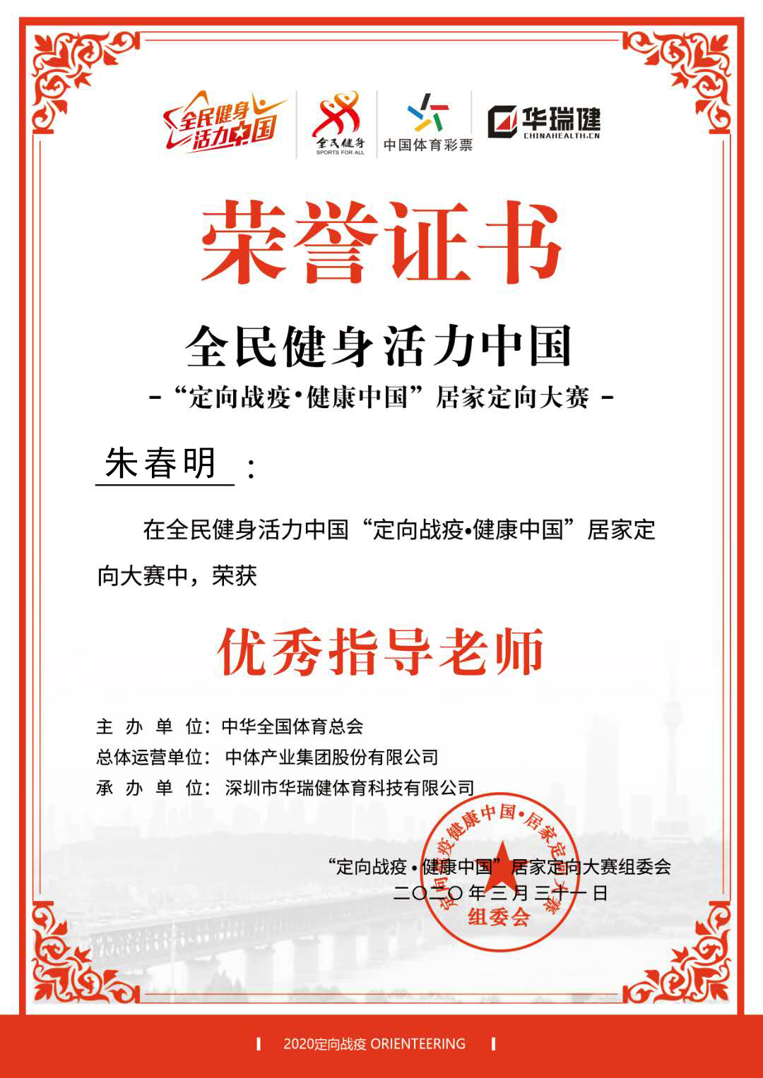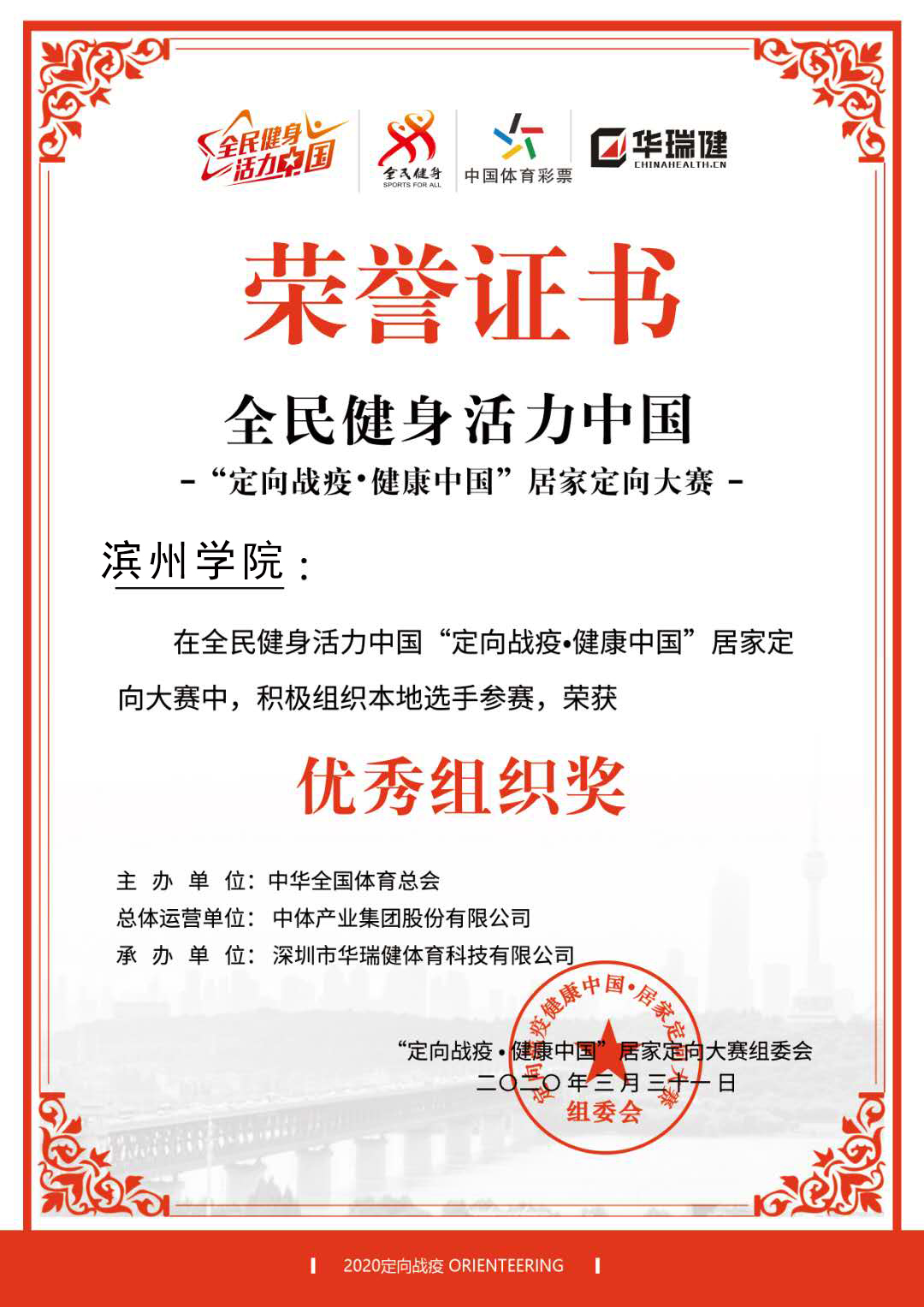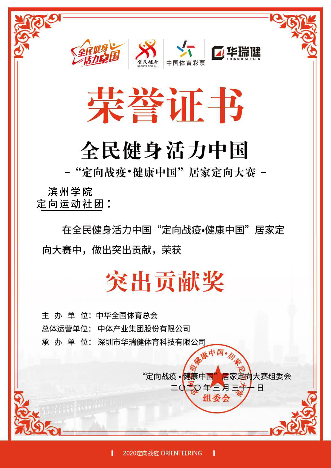 2020年4月8日,由深圳市定向运动协会发起,中华全国体育总会主办、中国测绘学会项目指导、浙江省幼儿体育协会等全国76家体育协会组织支持的“定向战疫,健康中国”居家定向大赛完美收官。公司依托优质的线上教学资源和良好的定向运动文化底蕴,由朱春明老师带领定向运动社团成员积极参赛,参赛作品经过投票和专家评审最终获得二等奖,公司获得优秀组织奖,滨州公司定向运动社团获得突出贡献奖,朱春明被评委优秀指导老师。作为本次大赛的主要发起人,中国无线电和定向运动协会副主任、深圳市定向运动协会辛延军会长充分肯定了公司定向运动良好的发展态势,并对参赛作品给予了高度评价。