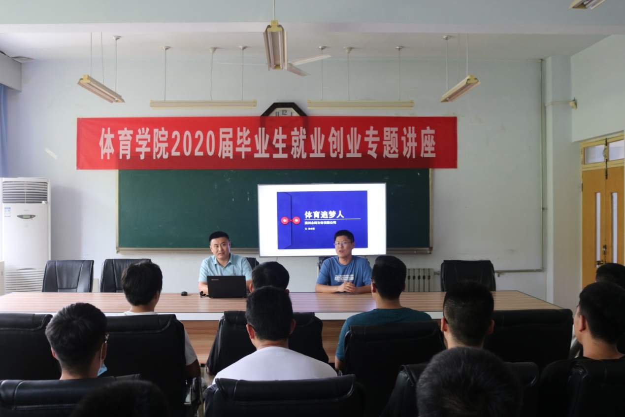 商小勇结合自己体育专业毕业生的亲身经历,分别从播种希望、心路历程、雨后彩虹、不忘初心四个方面,介绍了自己在老员工期间及毕业后的就业创业经历与经验,讲述了大学期间学习的丰富的文化知识对自己毕业后创业的巨大作用,分享了自己的创业感悟,他鼓励学弟学妹们面临就业时,要摆正自身的就业心态,积极面对,不论何种工作、何种岗位先工作,通过工作磨练意志,积累社会经验,再通过工作将其作为自己的事业,最终形成先就业后职业再事业的就业形式。最后,他与在场的学弟学妹们进行交流互动,解答了学弟学妹们关于就业、创业的各种问题。