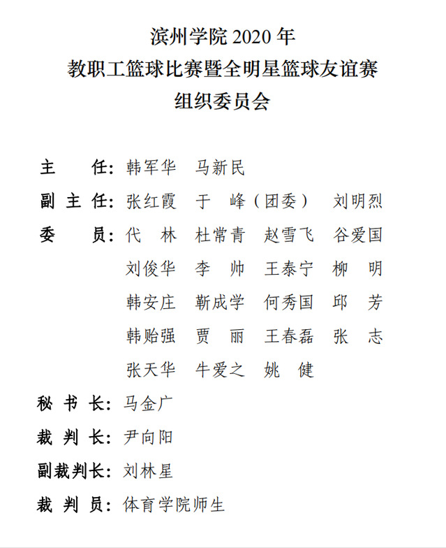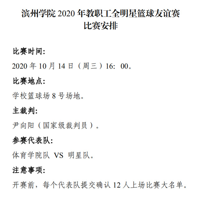 为丰富广大教职工体育文化生活,展示教职工风采,推进全民健身运动深入开展,校工会研究决定2020年10月举办教职工篮球比赛暨全明星篮球友谊赛。