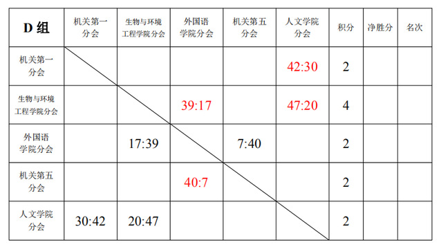 10月5日第二轮比赛,A组、B组轮空,C组、D组比赛后,积分情况如下: