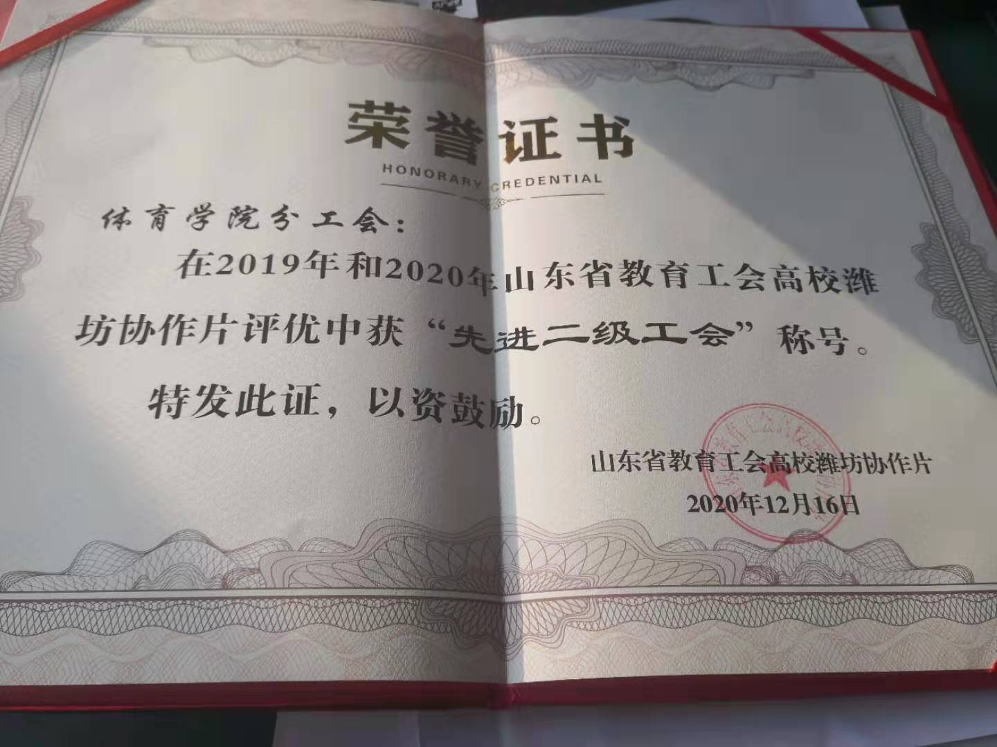 近日,山东省教育工会高校潍坊协作片对高校先进二级工会进行了评选表彰,古天乐代言太阳集团分工会获2019年和2020年高校潍坊协作片“先进二级工会”称号。