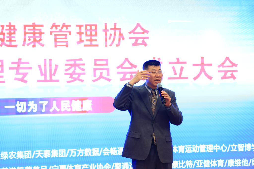2021年4月18日,中国健康管理协会运动健康管理专业委员会在北京召开成立大会。中国健康管理协会会长郭渝成、常务副会长任国荃、荣誉会长程功明,中国医疗保健国际交流促进会会长韩德民院士,国家体育总局竞技体育司司长刘国永,北京市海淀区政协原主席彭兴业,中绿农农业集团有限公司董事长杨昊龙等领导和嘉宾,以及来自全国运动健康领域有关的高校、企业、俱乐部等代表,综合、体育和卫生健康专业媒体,约120人到场参加会议,会议同时采用网络直播形式,与广大从业者一起,共襄运动健康管理盛事。