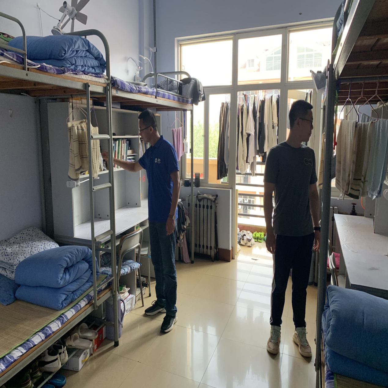 本次检查重点为管制刀具、用电安全、大功率电器、危险物品、防水、防盗以及宿舍卫生等方面,对发现的问题现场提出并予以整改。经过将近一个多小时的精心检查,发现各宿舍卫生状况普遍良好,基本做到了被褥衣物叠放整齐,地面、桌面干净整洁,用电合理、安全。仍有个别宿舍存在卫生不达标、空气质量较差等问题,检查组及时进行了批评指正,进行现场整改。