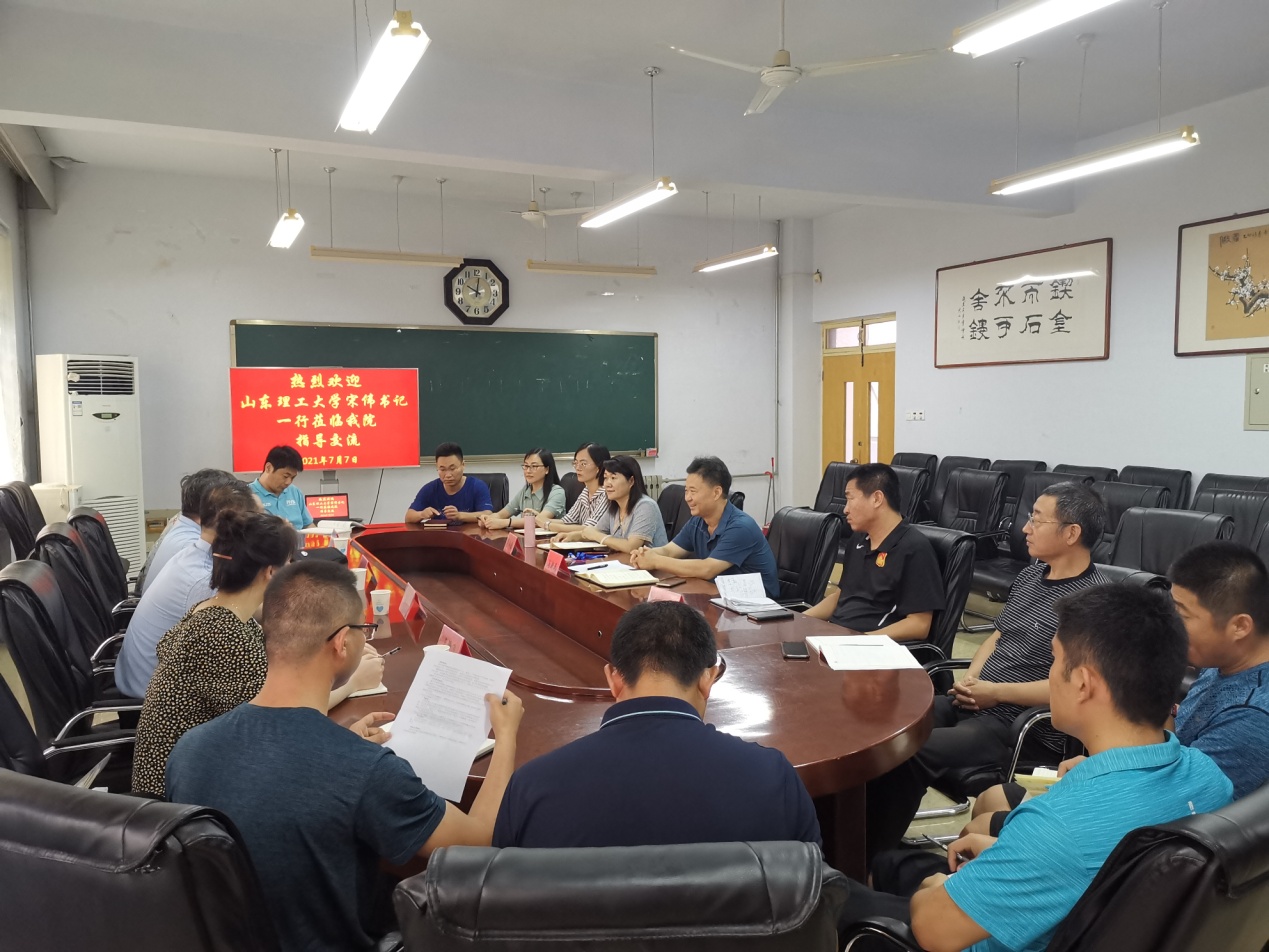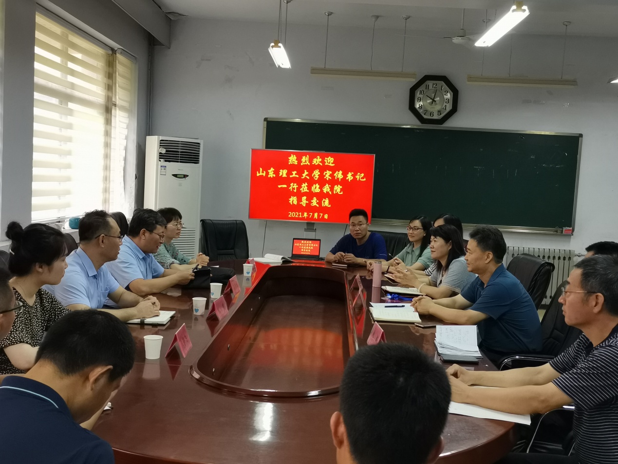 7月7日上午,山东理工大学古天乐代言太阳集团宋伟副书记一行四人来公司对员工考研工作进行考察交流。公司党总支书记马新民、经理张红霞、副经理姚健以及部分考研指导教师、辅导员、班主任一同参加了座谈交流。