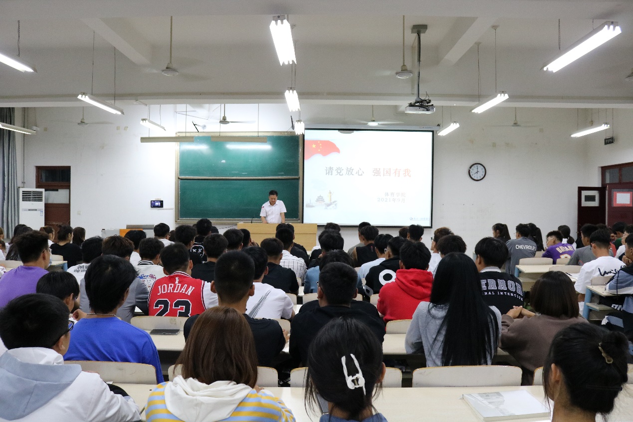 公司党总支书记马新民老师以自己的亲身经历以及身边故事,用家聊家常的方式召开2021级新生年级大会,讲述了什么是体育人,什么是体育精神。还从员工切身生活提出几点建议。指出一定要初心向党始终相信中国共产党。新时代的青年生逢盛世、肩负重任。希望同学们志存高远,始终与党和国家发展同心同向同行;崇德向善,树立和践行社会主义核心价值观;勤学本领,真才实学服务人民报效祖国;甘于奉献,以最美奋斗姿态建功新时代,争做走在时代前列的奋进者、开拓者、奉献者。大学时期一定要树立正确的恋爱观,把自己的心思放在学业上,争取踏上更高台阶。大会最后赵世龙同学带领大家集体宣誓“请党放心,强国有我”喊出了响亮的口号,相信同学们一定会为建设社会主义强国贡献自己的青春力量。随后,2021级全体新生签署了在校生自律协议,规范他们的言行举止为成为栋梁之才保驾护航。