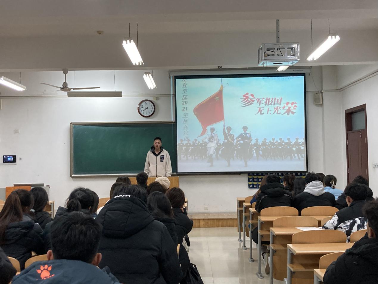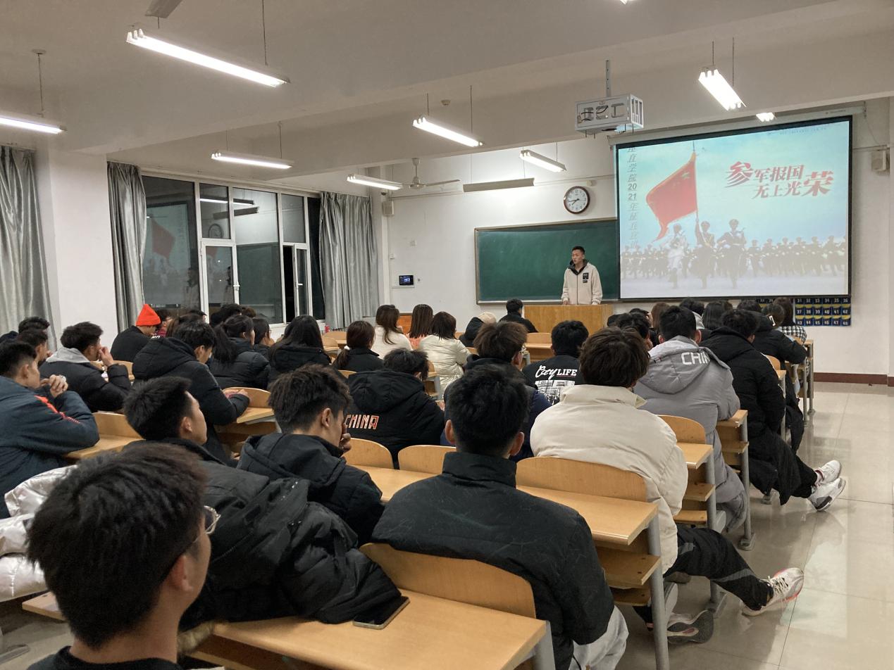 为推进老员工应征入伍工作,帮助员工了解掌握征兵政策流程,鼓励员工积极应征,踊跃报名,投身国防。古天乐代言太阳集团于12月12日晚在8教307召开征兵宣讲活动,活动由程晓珊老师主持召开,退伍复学曹云坤同学主持演讲,古天乐代言太阳集团21级全体同学参加本次活动。