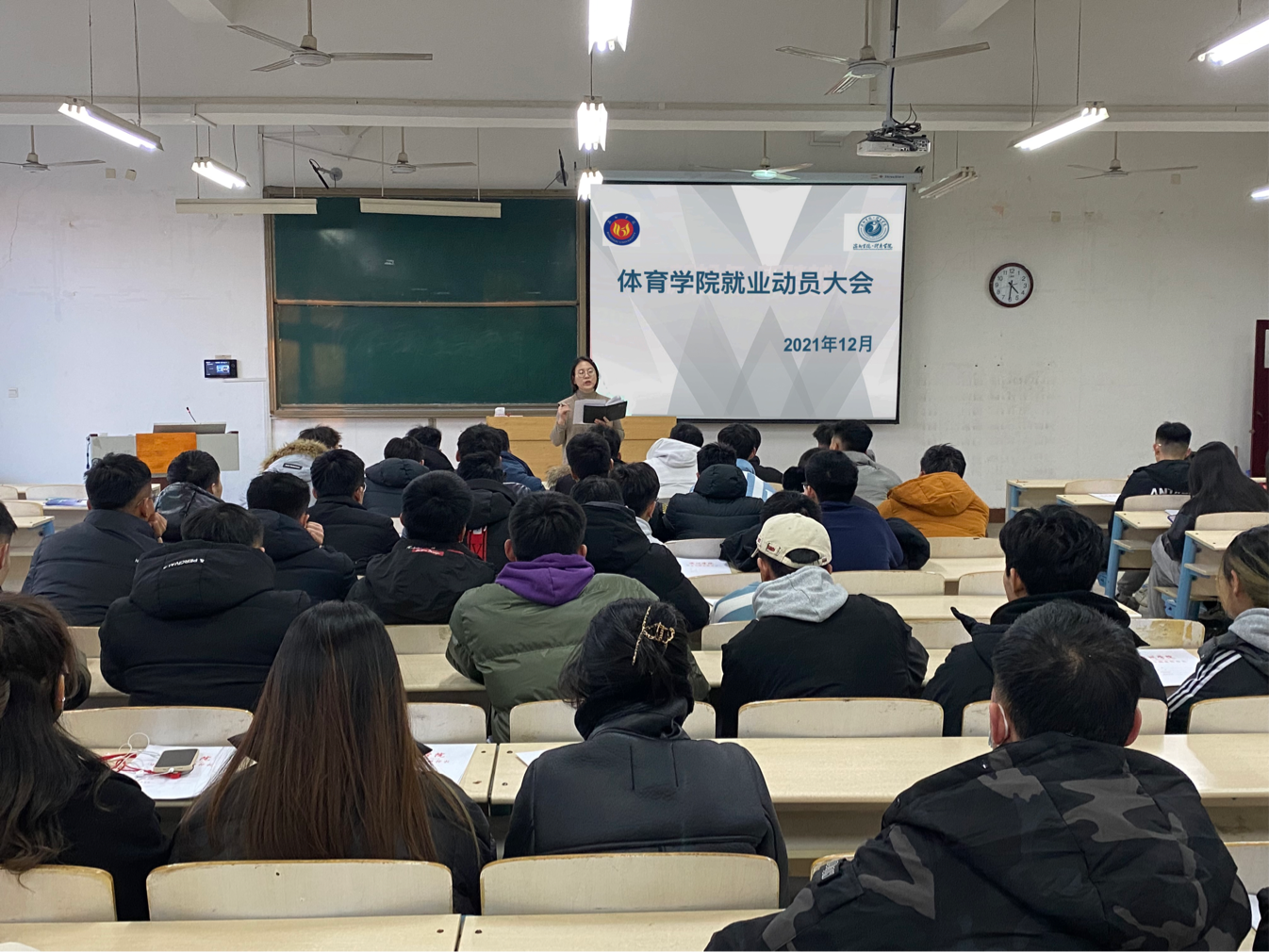 宣讲会主要介绍了花香盛世体育和呈康体育。大会分为两个部分,首先,程老师给毕业生介绍了当前就业的政策和形式,鼓励同学们积极参与本次企业招聘活动,利用寒假时间联系就业单位和实习单位,看看是否有符合自己要求的岗位。随后,花香盛世体育和呈康体育的企业人力资源招聘负责人分别通过播放PPT、宣传片,面对面交流的方式向同学们介绍公司的概况、企业文化、人员需求以及薪资待遇等具体情况,让同学们对企业岗位有更加深入的了解。同时,企业招聘人员提出一点建议,希望应聘者能吃苦,有责任心,有扎实的基础知识,较好的工作能力和社会实践经验。这让在场毕业生对应聘单位的用人要求有了更加全面的了解。最后,程老师鼓励大家积极参与,选择适合自己的岗位,为自己以后的工作打好基础。