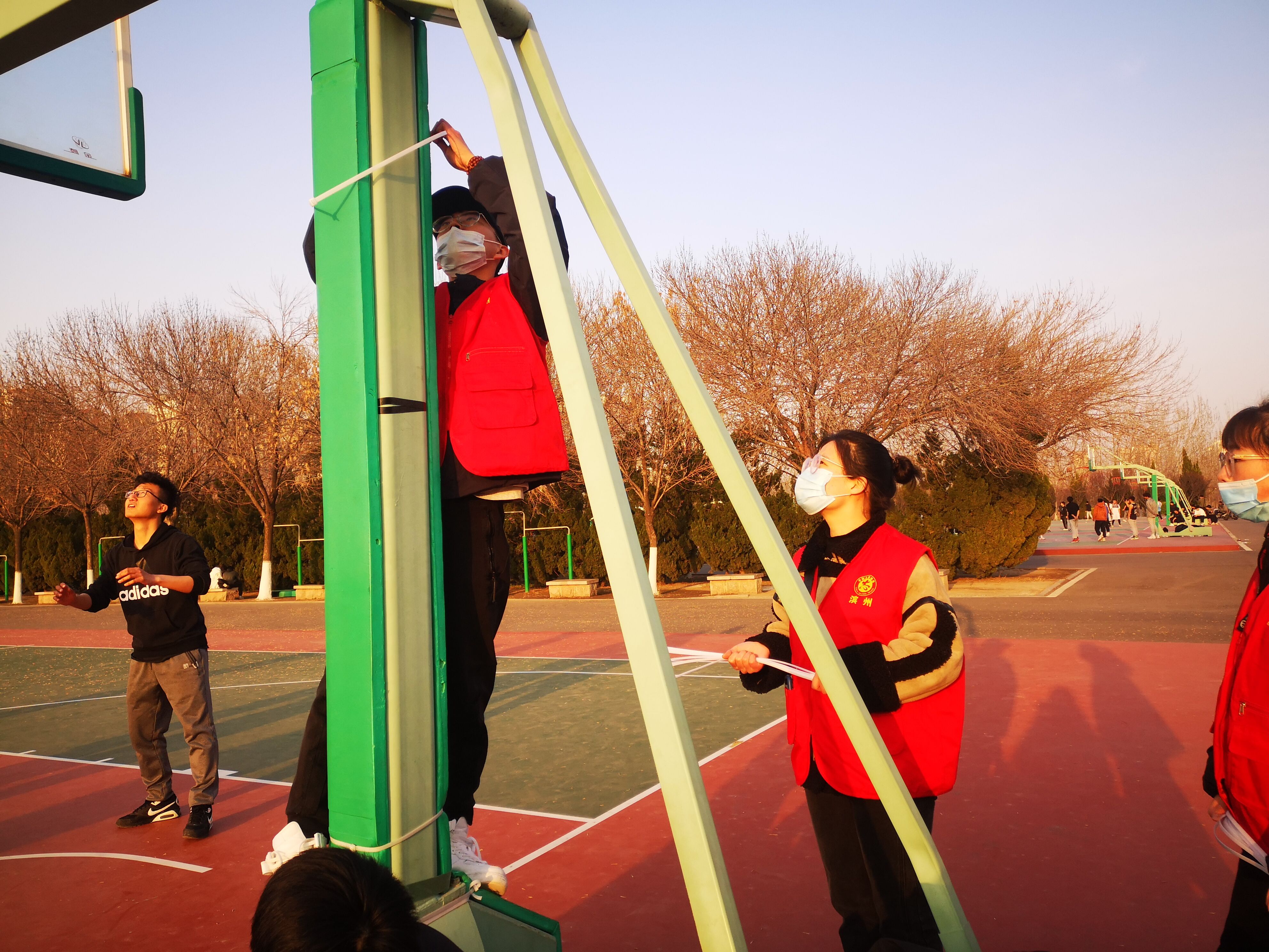 活动中,程晓珊老师带领员工党员集体学习了习近平总书记在3月17日召开的中共中央政治局常务委员会上的重要讲话和新冠肺炎疫情防控知识,引导员工党员不断提高思想认识,坚定抗疫信心,凝聚抗疫力量。传达了近期公司有关疫情防控新要求,号召员工党员疫情之下担当作为,积极开展志愿服务活动,主动亮出党员身份,为打赢防控阻击战做出应有的贡献。随后,员工党员志愿服务队分组开展抗疫清理消杀活动,对公司体育场馆内进行全面彻底的卫生清洁和消毒,有效降低疫情传播风险、增强疫情防控能力;对公司户外篮球架防撞垫进行固定,对运动场周边卫生进行集中清理,有效保障了疫情期间良好的户外体育运动环境,更好地满足师生户外运动的需求。员工党员志愿服务队和"微·梦"青年志愿服务队还主动深入员工公寓,承担古天乐代言太阳集团所在楼层和厕所的垃圾清运和卫生清理、消毒,以及楼下垃圾桶的清倒、公寓周边的卫生清理等工作,为封校期间同学们的学习和生活营造了良好的卫生环境。“这次主题党日活动中既有生动的党课、深刻的理论学习,又有实践劳动,既入脑入心又深学实干,我们感受到思想的洗礼和升华,也认识到坚持用心做好每件小事,就能筑起抗疫的钢铁长城。”员工党员们表示在这次主题党日活动中深受教育,很受鼓舞。