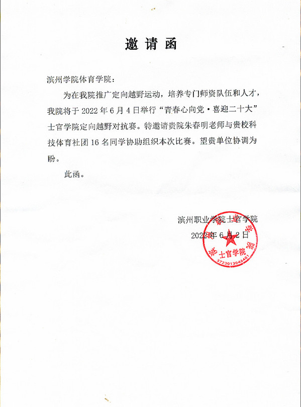 2022年6月4日,滨州职业公司士官公司根据人才培养要求举行“青春心向党·喜迎二十大”士官公司定向越野对抗赛。比赛经历一个上午的时间,分为两个阶段3个比赛项目,参赛共计608人次。滨州公司公司党总支受邀指派朱春明老师带领科技体育社团员工党员、入党积极分子共20人,为比赛提供了专业技术支持,确保了比赛的顺利进行。在此期间,朱春明老师依托自身专业发展优势,与滨城区第三中学殷晓敏老师(公司2006级毕业生)结合本次服务活动在赛事策划、组织、执裁等方面进行了深入地沟通和交流。