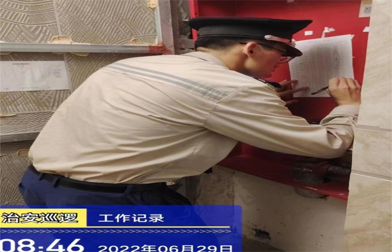 图为志愿者在山东省青岛市城阳区星河湾小区任治安员一职,负责住户业主的安全,排查车辆及外来人员。