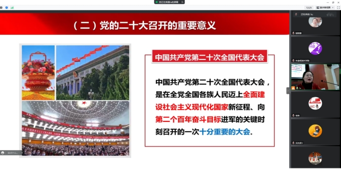 会上,马克思主义公司教师刘娟作了题为《凝心聚力向复兴团结奋斗谱新篇——认真学习领会党的二十大精神》的专题辅导报告,从党的二十大召开的重要意义、党的二十大报告的主要内容、贯彻落实党的二十大精神的科学指引三个方面进行了生动讲解。辅导报告既有理论高度、又有思想深度,对于大家深刻领悟党的二十大报告的核心要义和精神实质,凝聚思想共识,强化使命担当有重要启发作用。