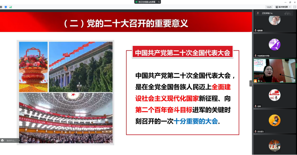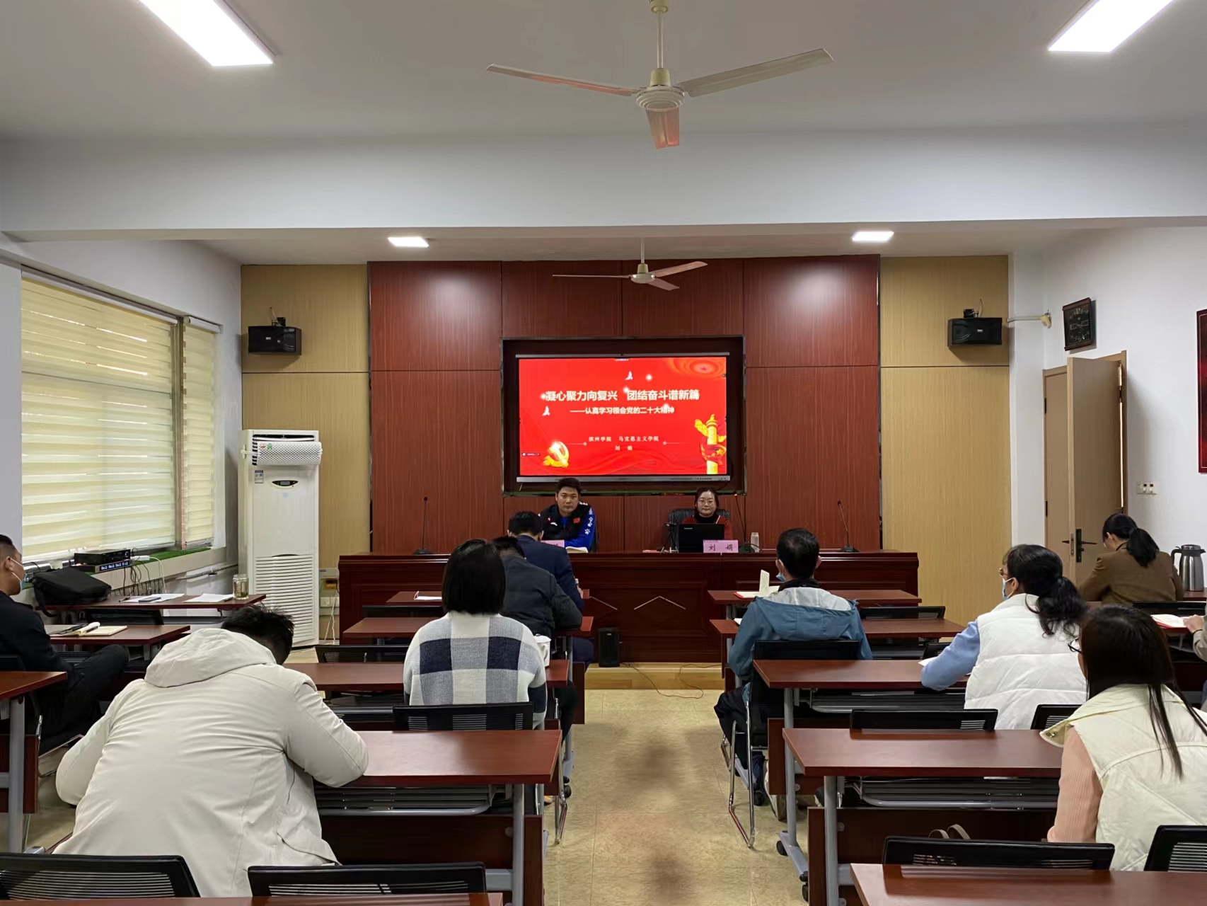 会上,马克思主义公司教师刘娟作了题为《凝心聚力向复兴 团结奋斗谱新篇——认真学习领会党的二十大精神》的专题辅导报告,从党的二十大召开的重要意义、党的二十大报告的主要内容、贯彻落实党的二十大精神的科学指引三个方面进行了生动讲解。辅导报告既有理论高度、又有思想深度,对于大家深刻领悟党的二十大报告的核心要义和精神实质,凝聚思想共识,强化使命担当有重要启发作用。