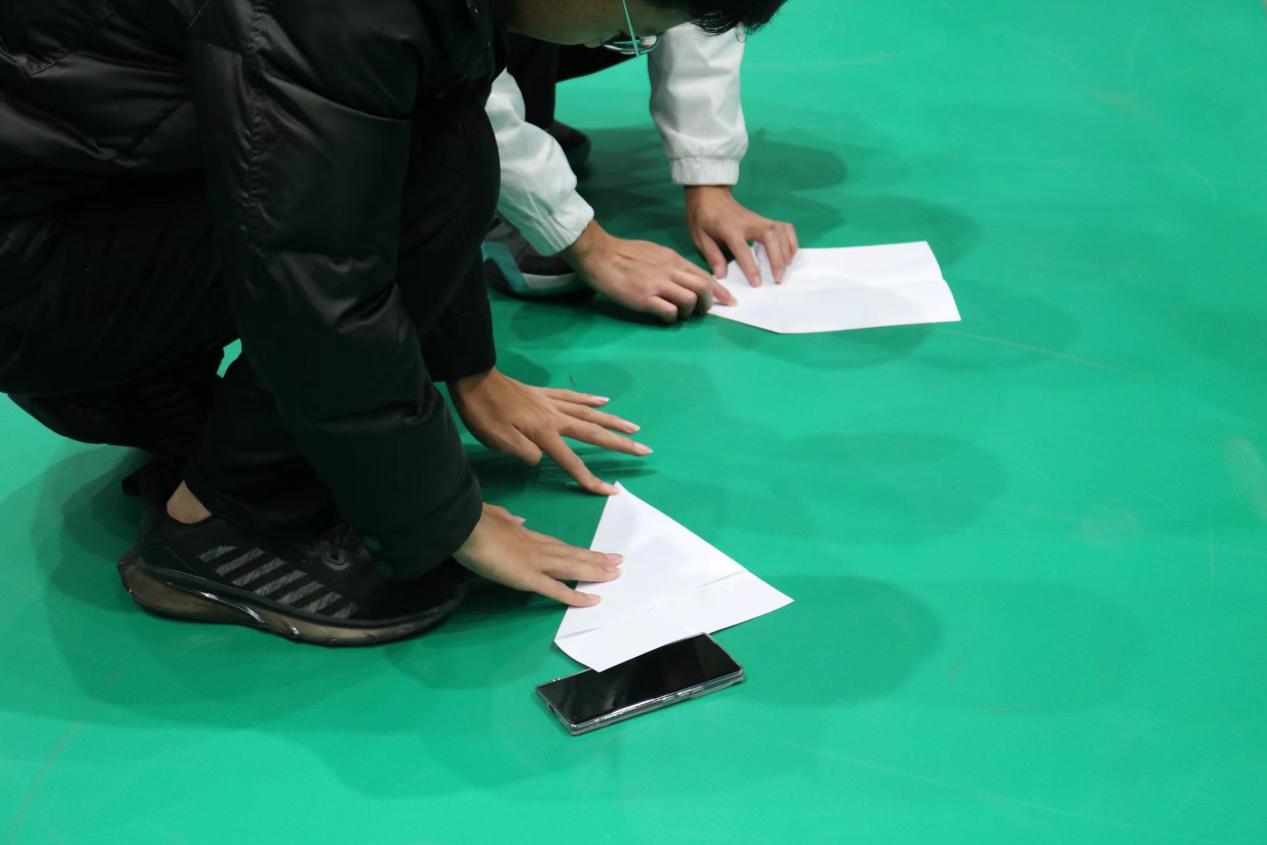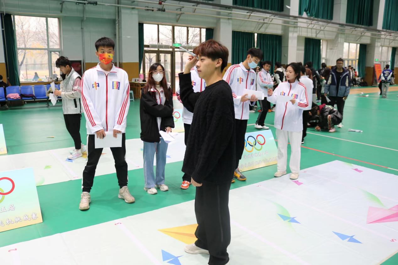 参赛选手在完成纸飞机制作后,进行本次挑战赛第一个项目——“纸折飞机直线距离赛”,参赛选手们在一声令下后摆好姿势,高举纸飞机投掷,纸飞机也在空中留下一道道优美的弧线。第二轮比赛项目为“纸折飞机留空时间赛”,选手们通过使用不同类型的纸飞机和抛出方式努力在比赛中取得好的成绩。最后一轮比赛项目为“纸折飞机奥运五环靶标赛”,选手们用通过站在不同区域抛出手中的纸飞机,使其平稳穿过奥运五环,通过距离奥运五环远近的不同来评判所得分数。