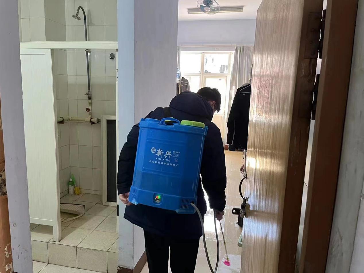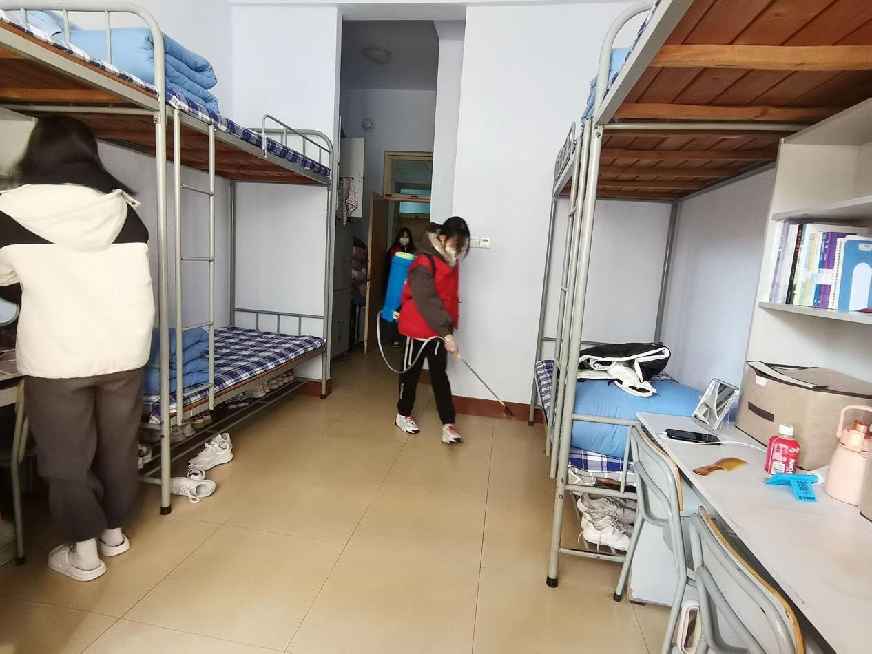 春季是传染病的高发期,员工社区又是居住密度较大的易感区域,为有效降低和控制病毒传播,保障同学们的健康,员工党支部40余名党员在员工公寓开展全面消杀志愿服务。员工党员穿上红马甲,带上口罩,背起喷雾器,对每一个员工宿舍逐一进行全面清洁消毒,开窗通风换气。地面、阳台、卫生间、洗手池、门把手、水龙头开关、床底等区域做到不留死角、不留盲区,同时还提醒同学们注意日常的宿舍清洁和通风消毒。此外,员工党支部两位老师还面向员工公寓各楼层负责人开展了运动健康教育活动,宣传传染病预防知识、运动保健知识和员工社区日常工作要求等,切实提高了同学们的健康安全意识。同学们也积极配合消杀工作,保证了本次活动的顺利完成。