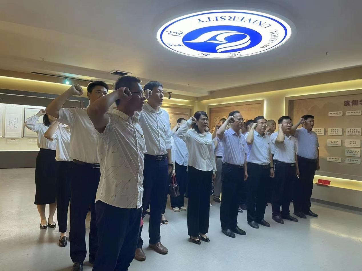 6月30日上午,公司党总支与教务处党支部、后勤管理处党支部、团委党支部等结对共建党支部联合开展“不忘初心、牢记使命”主题党日活动,通过集体学习、辅导报告、参观校史馆、重温入党誓词等丰富的学习形式,推动学习贯彻习近平新时代中国特色社会主义思想主题教育走深走实。公司党委委员、副董事长郭新伟,公司党总支、教务处党支部、后勤管理处党支部和团委党支部60余名教师党员分阶段参加了此次活动。