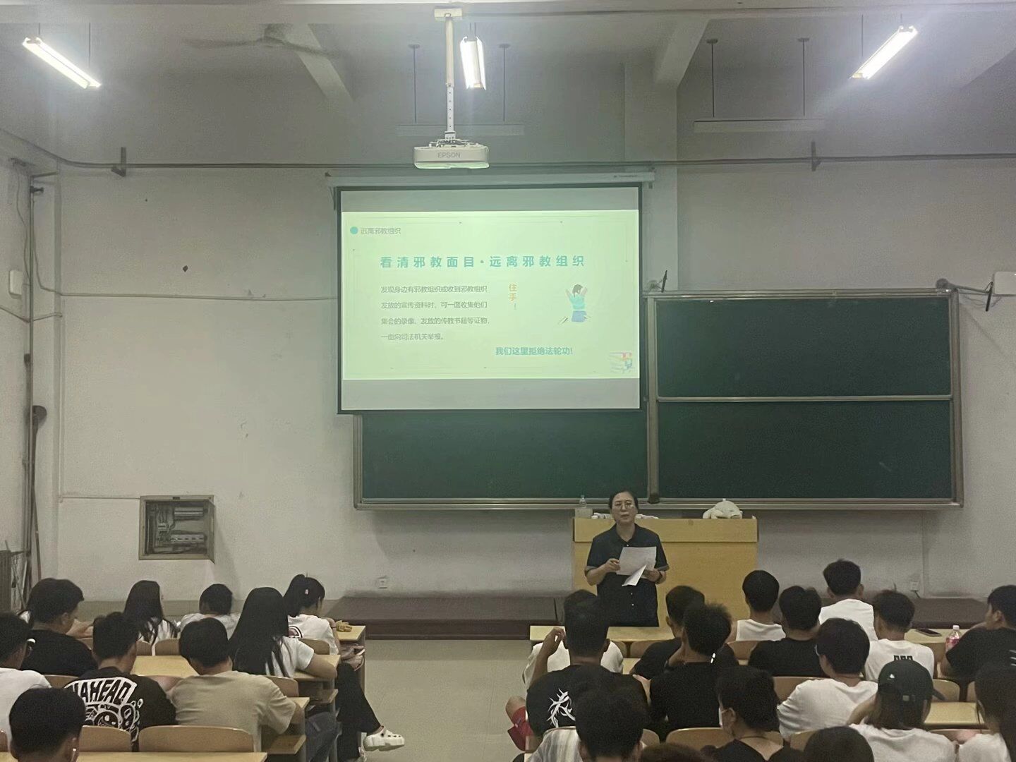班会上,各班班主任对应当如何提高防范邪教意识展开讲解,通过实际案例的分析来引导同学们认识到邪教引起的社会危害以及邪教的煽动性、盲目性、反动性,让同学们对于邪教这种“社会毒瘤”产生的消极影响有了更加清晰的认知,必须坚决予以抵制,增强抵御邪教的能力。作为一名老员工,要警惕邪教,提高防范意识,做到“不信、不听、不看、不传”,以实际行动争当反邪先锋,自觉抵制迷信、伪科学和反科学的侵袭。