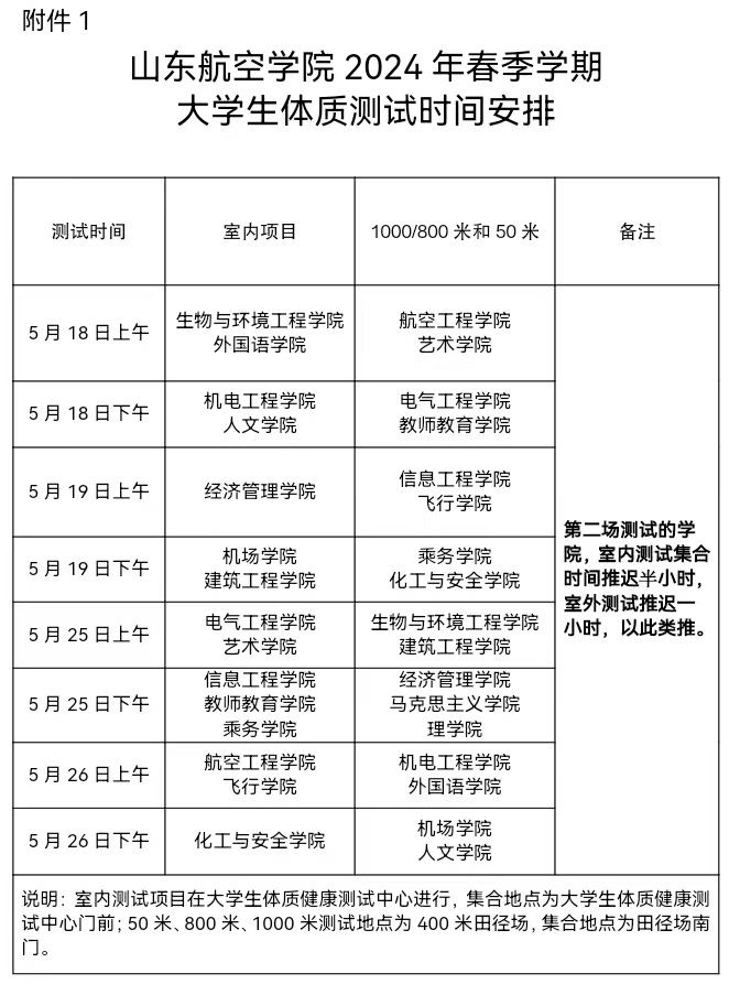 为了安全、按时、有效地完成2024年春季学期《国家员工体质健康标准》(以下简称《标准》)测试工作任务,请同学们仔细阅读以下事项后进行测试。
