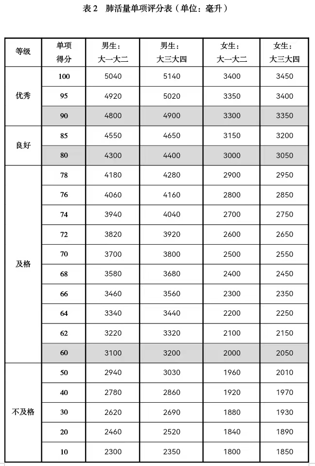 4.本标准将适用对象划分为以下组别:小学、初中、高中按每个年级为一组,其中小学为6组、初中为3组、高中为3组。大学一、二年级为一组,三、四年级为一组。