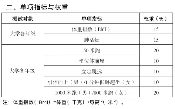 5.小学、初中、高中、大学各组别的测试指标均为必测指标。其中,身体形态类中的身高、体重,身体机能类中的肺活量,以及身体素质类中的50米跑、坐位体前屈为各年级员工共性指标。