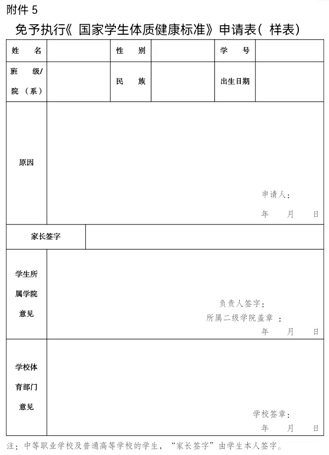 10.员工因病或残疾可向公司提交暂缓或免予执行《标准》的申请,经医疗单位证明,体育教学部门核准,可暂缓或免予执行《标准》,并填写《免予执行<国家员工体质健康标准>申请表》,存入员工档案。确实丧失运动能力、被免予执行《标准》的残疾员工,仍可参加评优与评奖,毕业时《标准》成绩需注明免测。