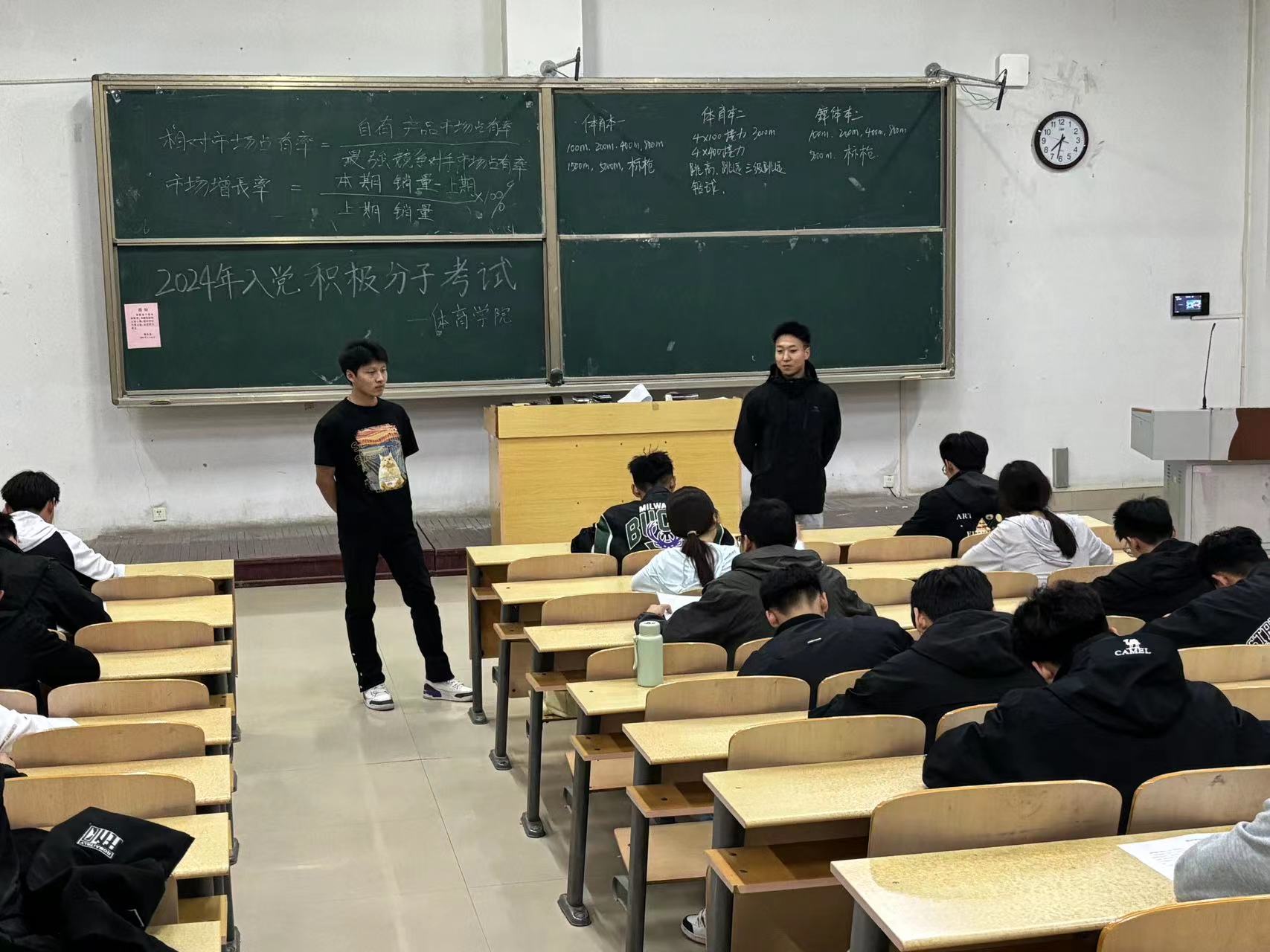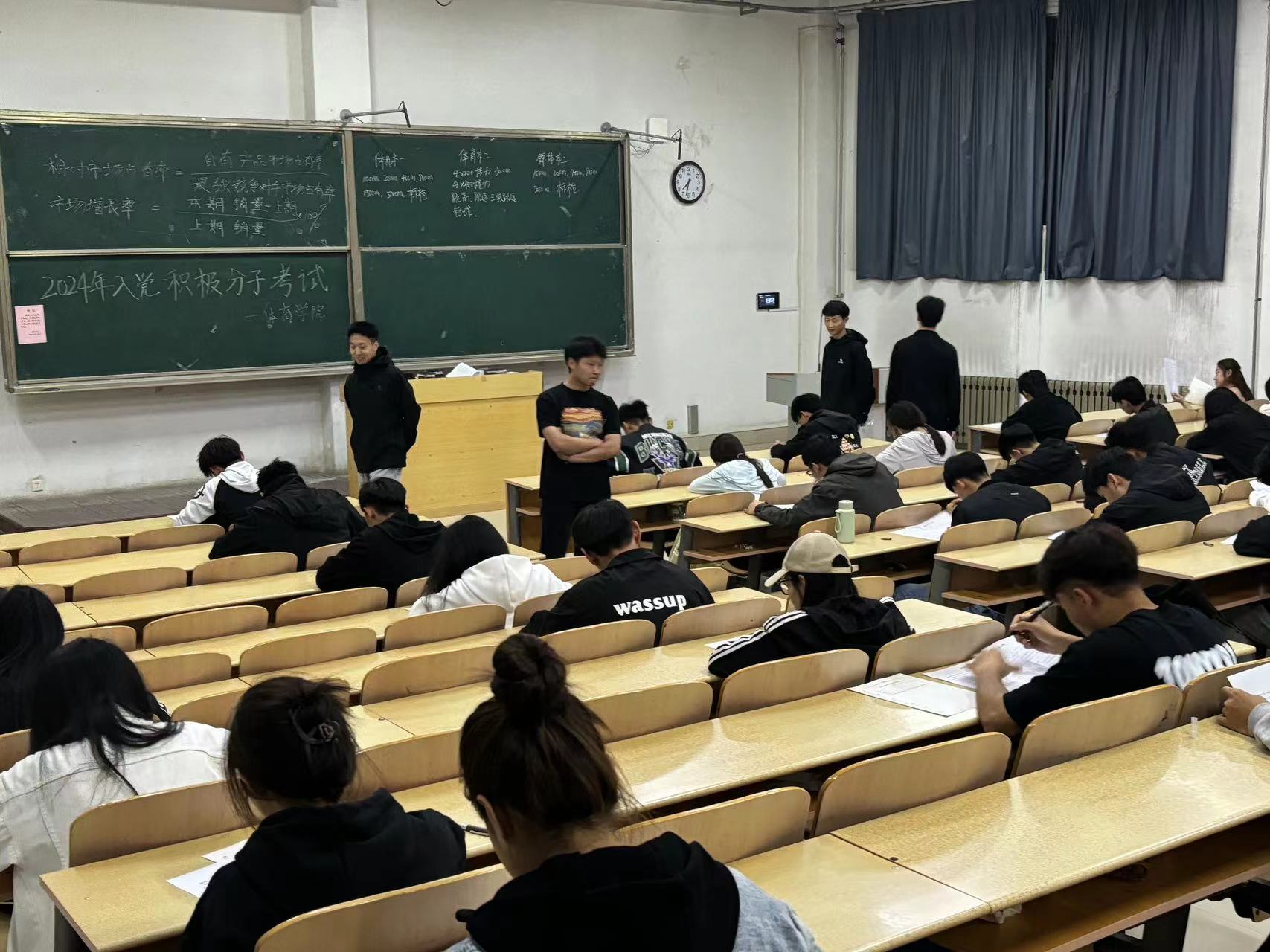 本次考试采取统一命题,闭卷答题的形式,以党章党规、党史、党的基本理论、知识,习近平新时代中国特色社会主义思想等为主要考察内容,旨在检验各位入党积极分子的思想觉悟和政治理论素养。考试前,监考人员强调了考试纪律,逐一收取考生手机,营造严肃的考试氛围。考生认真思考,积极作答,均在规定时间内完成答卷。最后,李振老师与两位监考同学收齐试卷,封存待阅,考试圆满结束。