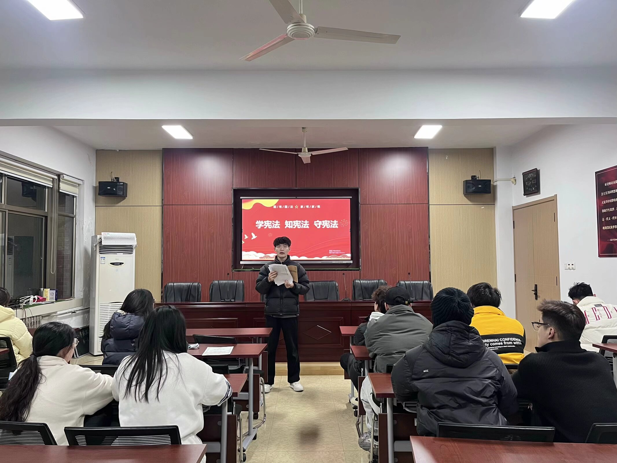 12月1日晚以班级为单位,全院召开主题班会,班主任面向青年老员工宣讲宪法知识,讲解宪法与老员工的关系,教授老员工应如何学习和维护宪法的权威性等。此次主题班会的召开让宪法意识在老员工心中生根发芽,成为一种自觉、一种习惯。