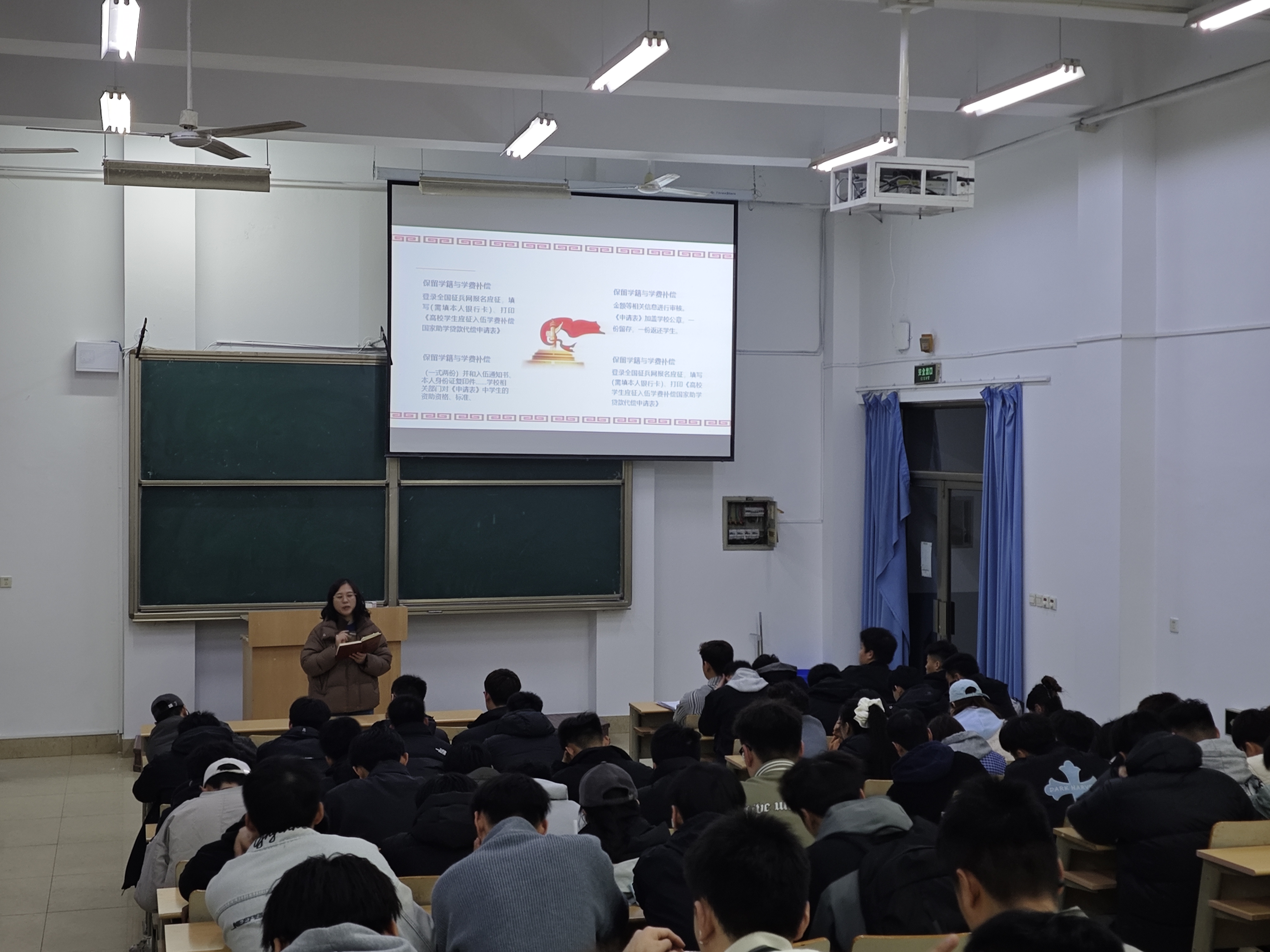 动员大会上,程晓珊老师从基本条件、基本流程、学费补偿等方面展开说明,并重点剖析了经济支持、就业保障、升学优势、职业发展等国家针对老员工入伍的优惠政策。毕业生们认真聆听,并就自身关心的政策问题积极提问,程晓珊老师耐心解答,并根据每位同学的具体情况给予个性化指导和建议。