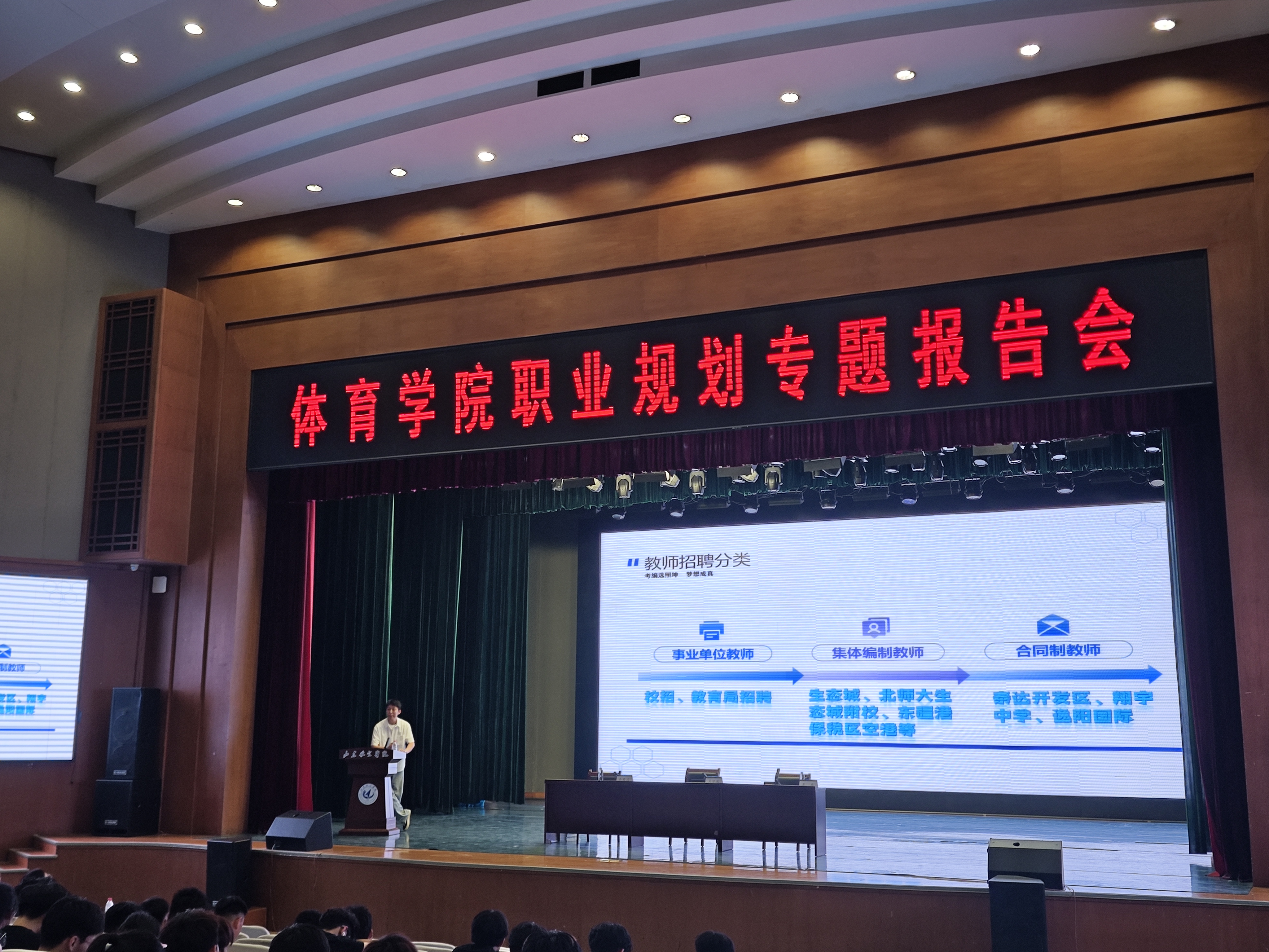 两位专家从体育产业蓬勃发展的宏观视角,为学子们拓展了职业规划新思路,深入剖析了体育专业人才在多元领域的独特优势与发展机遇。针对如何做好职业规划与准备,乔老师提出了关键建议:首先需深度自我认知,清晰了解自身兴趣、优势、价值观,明确职业倾向;其次要主动拓展行业视野,了解体育产业各细分领域的发展现状、趋势及人才需求;然后聚焦心仪方向所需的核心专业技能与通用能力,进行针对性强化;最后,积极参与实习、社会实践及志愿服务,在不同场景中检验兴趣、锻炼能力、积累经验。此外,乔老师还就体育专业员工报考编制或公****的相关政策进行了针对性解读。